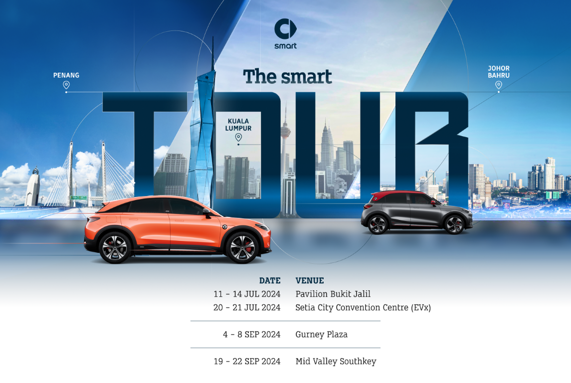 The smart tour brand roadshow at Pavilion Bukit Jalil is part of a nationwide showcase featuring the smart #1 and #3 vehicles.
