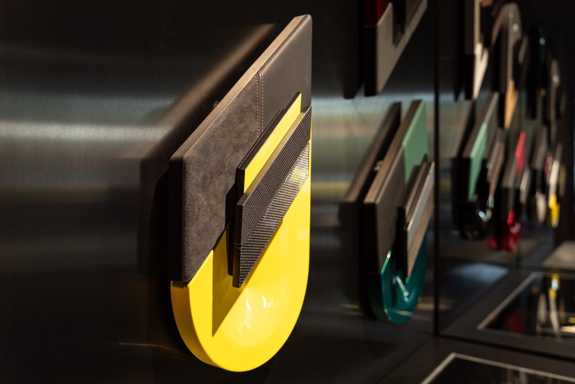 The interior is crafted from a mix of luxury materials and sustainable options, including a new luxury thread made from repurposed fibers from the fashion industry, PVD aluminium, Alcantara, Nappa leather, and Ultrafabrics PU.