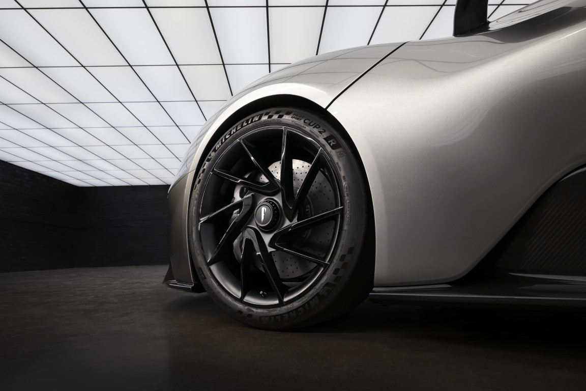 The T-shaped battery pack, which is liquid-cooled, is protected within a strong and lightweight carbon fibre housing and can be charged using DC fast chargers up to 270kW – for a 20-80% top up in as little as 25 mins.