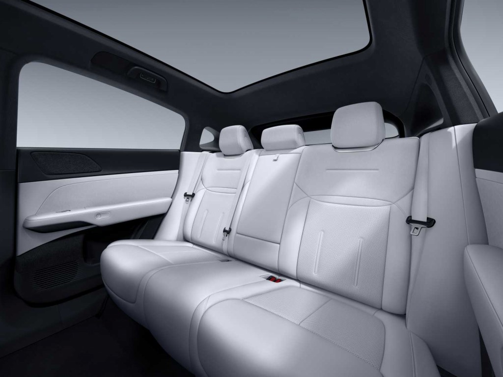 Its exterior features a sleek, tech-fluid aesthetic, with short front and rear overhangs and a suspended roof design that maximizes interior space.