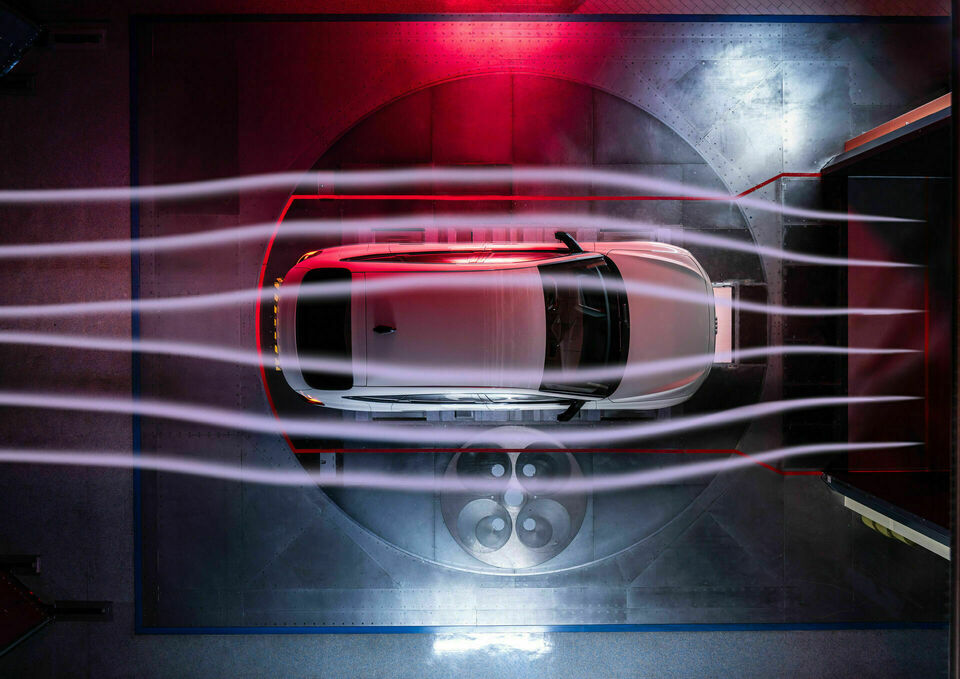 Key features contributing to the low Cd values include a slim greenhouse, sloping roofline, air curtains, optimised rear track width, and aero bezels.