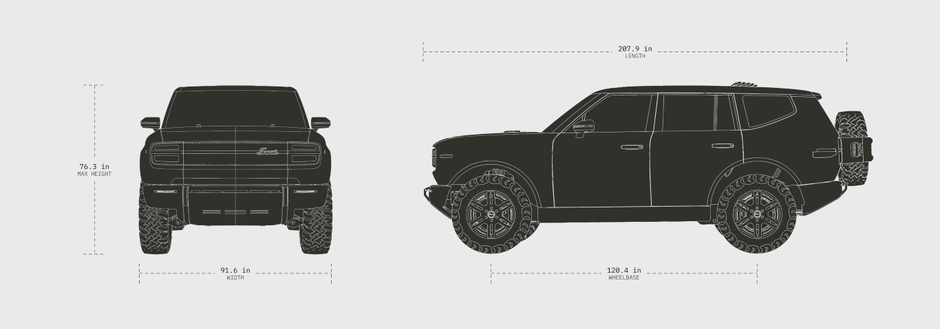 Each Scout vehicle will have an electric drive motor on each axle, allowing for rapid acceleration (0-97kph in 3.5 seconds) and up to 1,356Nm of torque.