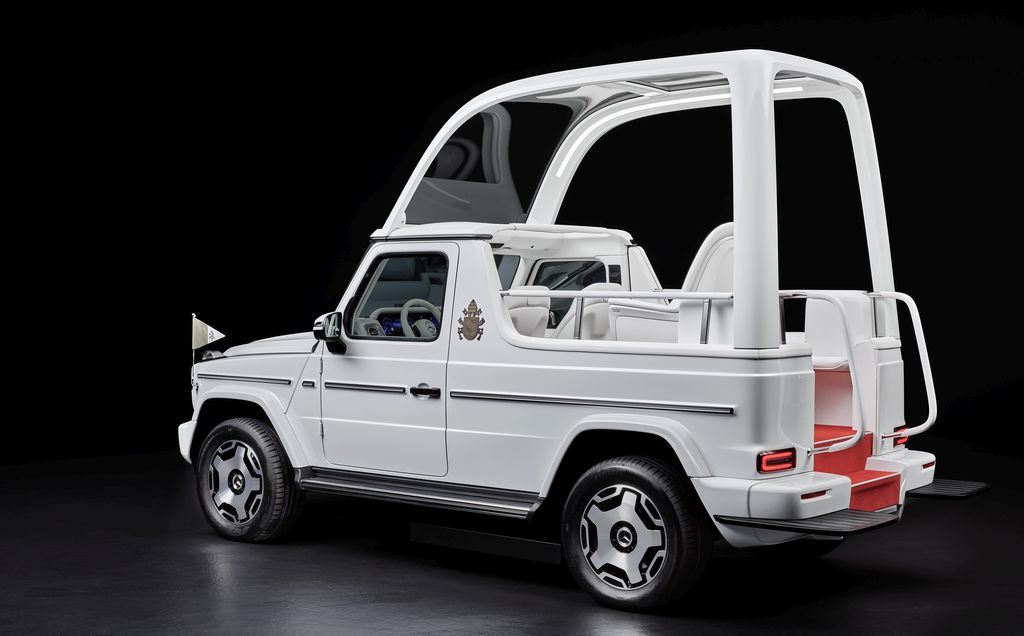 The electric G-Class, customised specifically for papal use, incorporates a drivetrain adapted for low-speed public appearances.