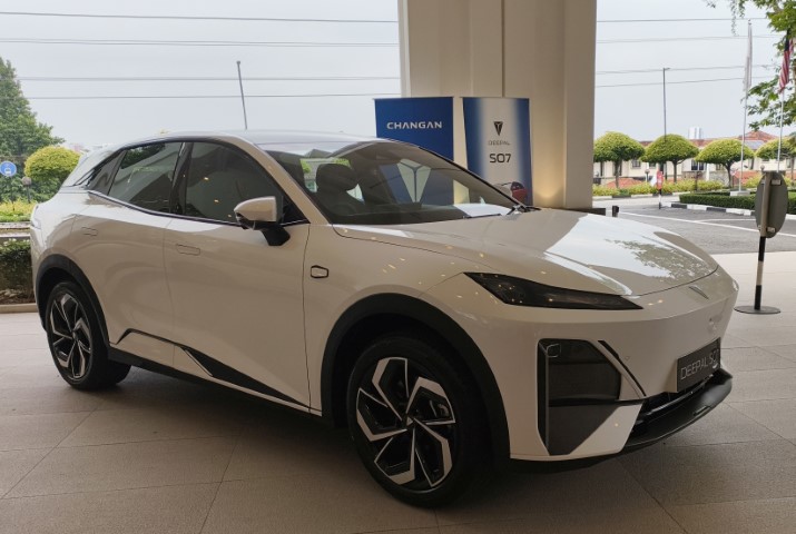 The Deepal S07, with a sub-RM200,000 price, will compete in the mid-size electric SUV segment. It features a sleek coupe-like design with frameless windows and large wheels.