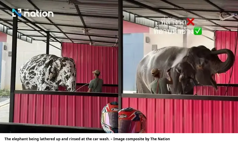 The Nation report did not say how much the person who brought in the elephant paid for the wash. It’s usual to charge more for bigger vehicles, and by extension big animals.