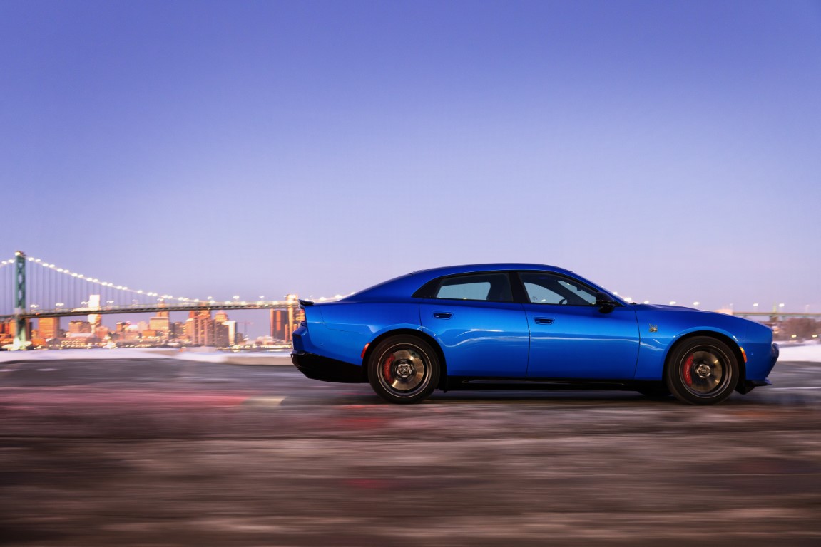 Dodge unveiled the all-new, all-electric 2026 Charger Daytona Scat Pack four-door sedan alongside its two-door coupe at the Midwest Automotive Media Association Spring Rally in Elkhart Lake, Wisconsin.
