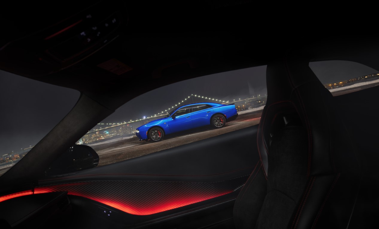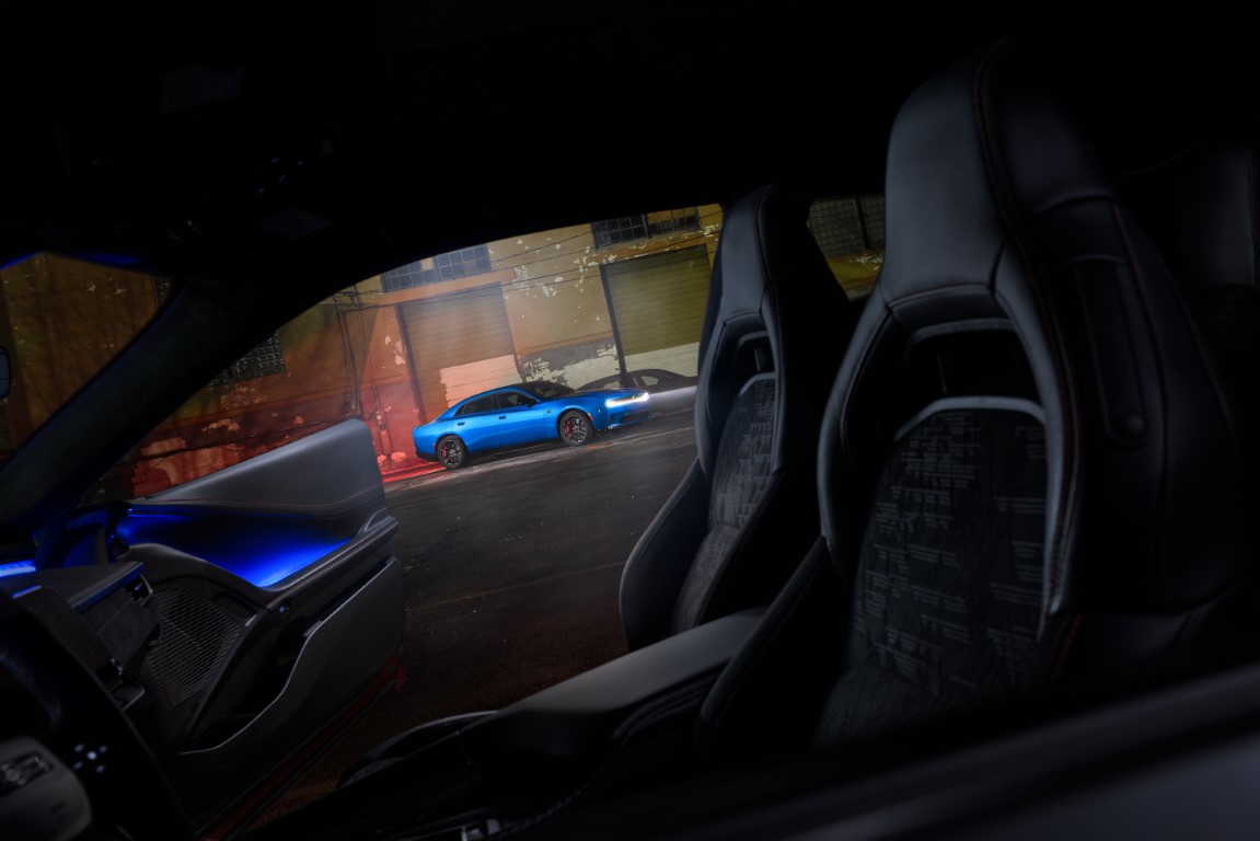 Dodge’s patent-pending Fratzonic Chambered Exhaust simulation generates a driver-focused rumble linked to performance output, while the R-Wing pass-through feature enhances aerodynamics.
