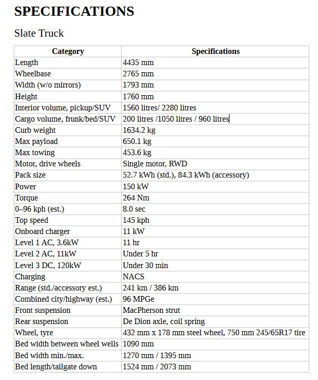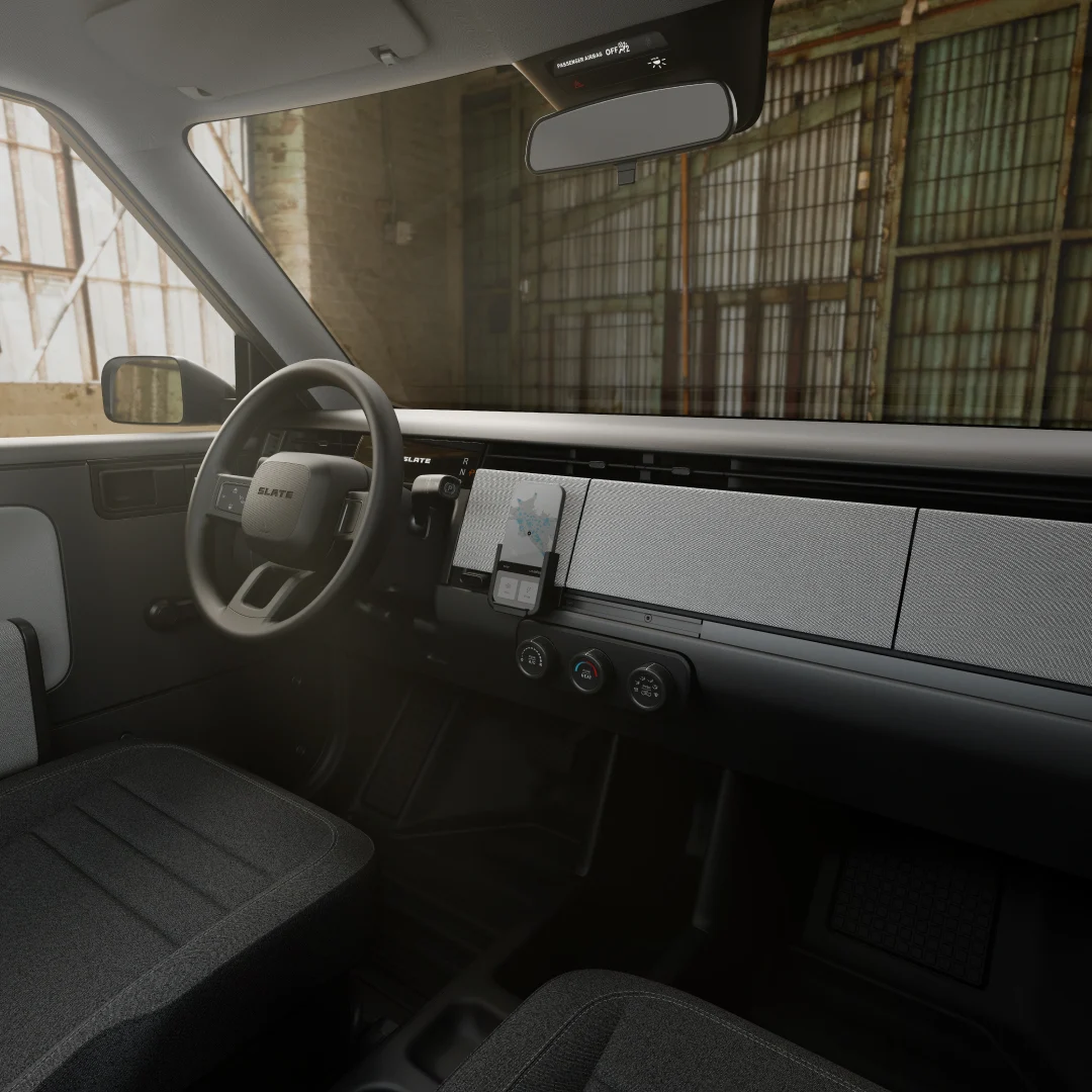 Slate’s business model strips out factory-fitted infotainment, speakers and power accessories to reduce cost and complexity, placing emphasis on a modular accessory ecosystem.