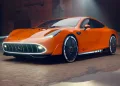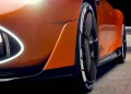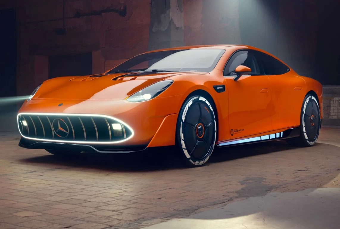 The striking sunset-beam orange finish, fastback profile, AMG-style grille, bonnet air outlets and broad carbon diffuser underscore its motorsport DNA and high-performance intent.