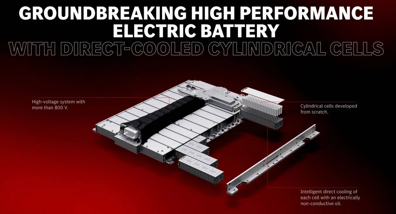 It employs tall, slender cylindrical NCMA cells with aluminium casings and full-tab architecture, plus a silicon-enhanced anode to boost energy density and charging speed.
