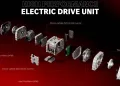 The front unit houses a single motor that functions as a booster and can be mechanically decoupled during steady cruising to minimise drag. The rear HP.EDU contains two motors alongside compact planetary gearsets, inverters and an oil-cooling system, all integrated within a single housing to optimise packaging and efficiency.
