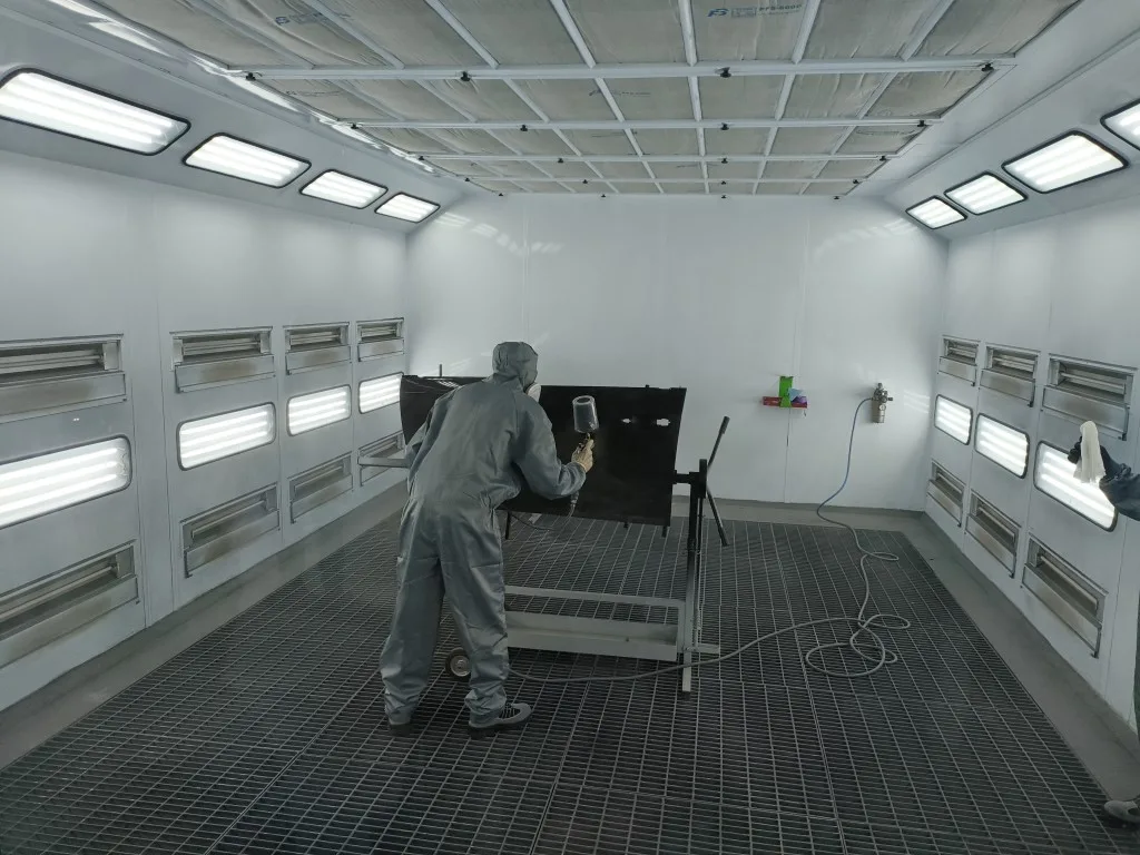 A dedicated mixing room and a Car-O-Liner frame-alignment system allow technicians to match manufacturer colour specifications and chassis tolerances with precision.