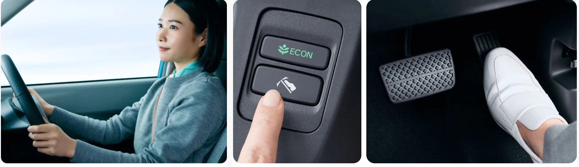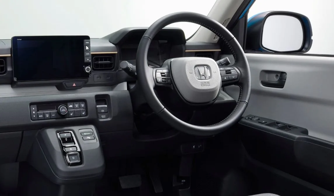 Inside, an angular, upright dashboard follows Honda’s “Man Maximum, Machine Minimum” philosophy: base models use physical controls in place of a central touchscreen, while higher-spec variants gain a nine-inch display alongside conventional climate switches and a volume knob.