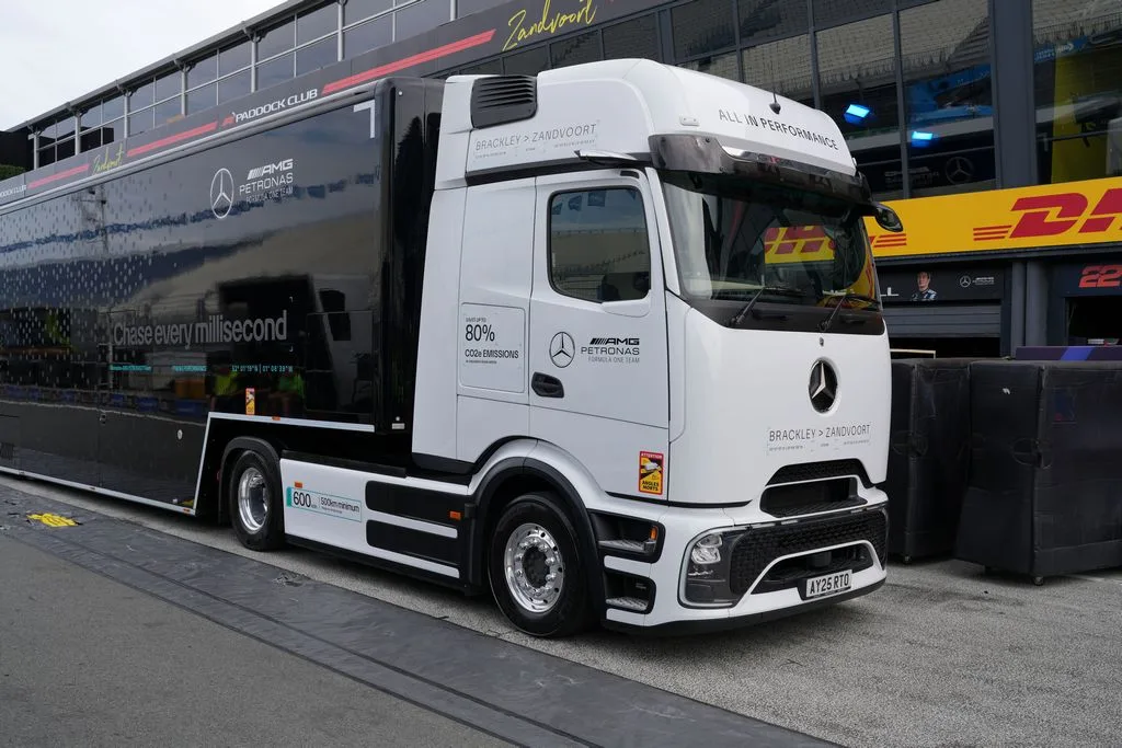 The Dutch trip followed a pilot at July’s British Grand Prix, where three eActros 600s moved cars and support kit to Silverstone. At Zandvoort, the battery-electric haulier was a rarity among diesel-powered transporters, underscoring the team’s push to cut freight emissions.