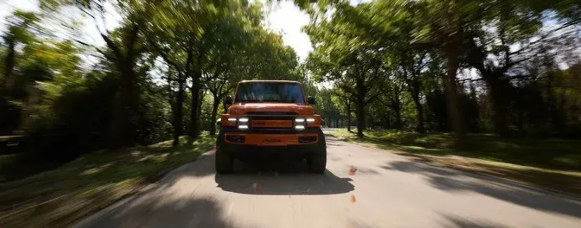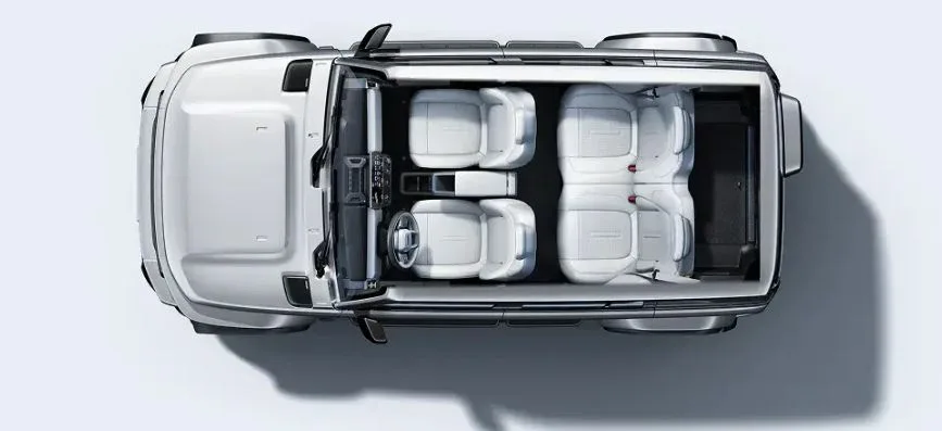 The design team has focused on the old-school off-roader look. You get a tall, upright body, stubby overhangs and round LED headlamps linked by horizontal light bars.