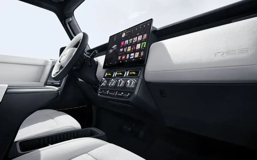 Inside, the V23 tries to be both playful and techy. Chunky grab handles and rotary knobs keep the adventure vibe going, but the cabin also brings ventilated seats (with massage on higher spec), faux leather upholstery and a flat floor.