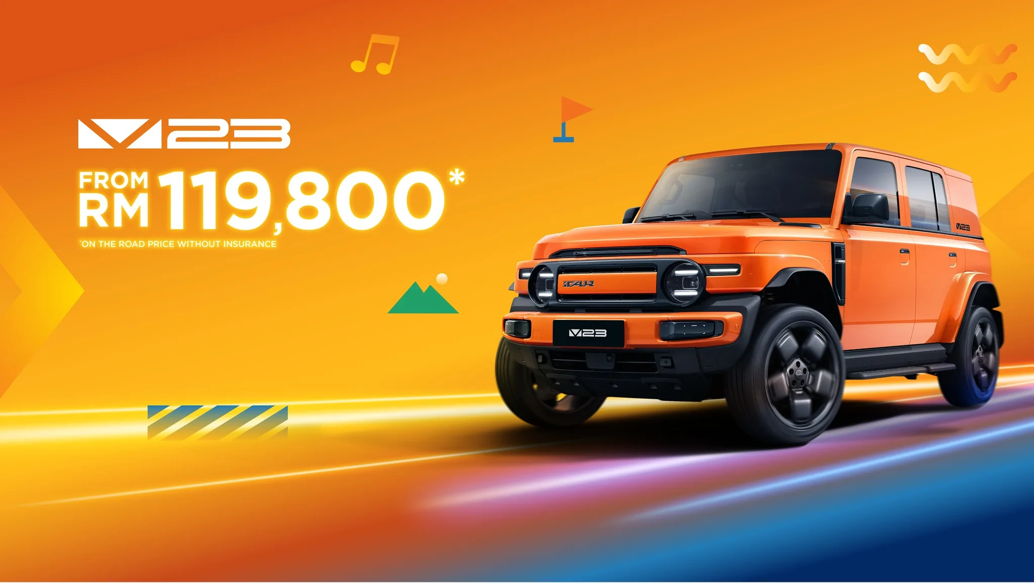 The V23 is a boxy, retro-flavoured SUV with full 4×4 swagger, priced from RM119,800 for the 2WD and RM132,800 for the intelligent all-wheel drive (iWD), both on-the-road without insurance.