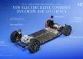 The drivetrain tries to cover a lot of ground. The rear-mounted permanently excited synchronous motor is paired with a two-speed transmission, intended to deliver strong low-speed response and better motorway efficiency.