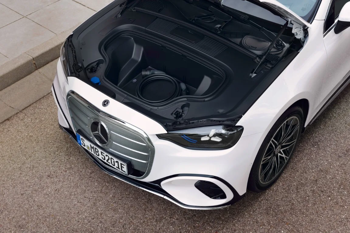 All-wheel-drive versions add a front motor that disconnects when not needed to cut drag losses. Optional chassis hardware includes Airmatic air suspension and 4.5-degree rear-axle steering, bringing the turning circle down to 11.2 metres.