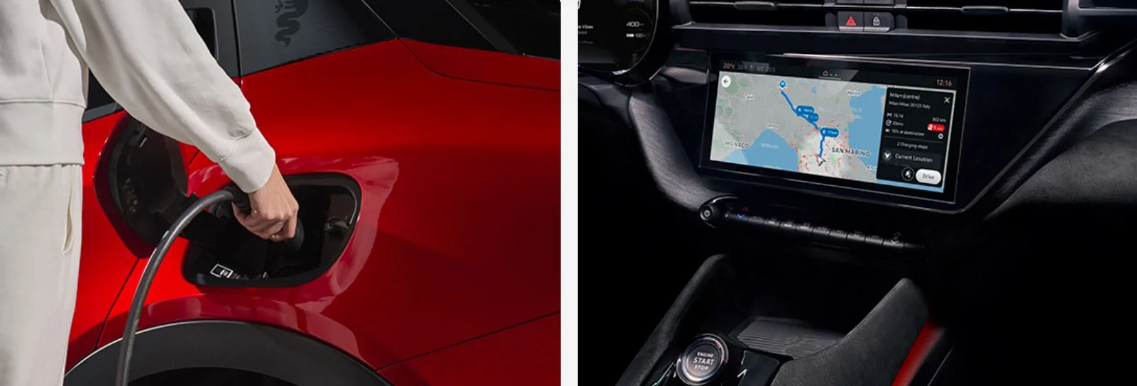 Alfa Romeo said a 10-80% charge takes less than 30 minutes.
