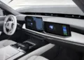 The car drops the traditional instrument binnacle in favour of the wide panoramic display at the base of the windscreen, while the centre touchscreen and passenger-side display take over more of the cabin’s digital workload.