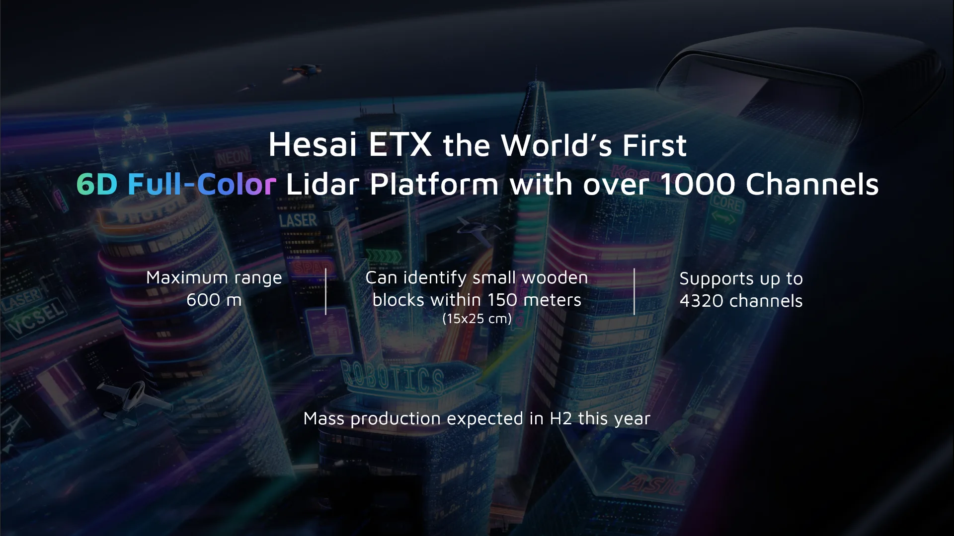 Hesai is tying that platform to its next-generation ETX lidar, which will be offered in 1,080, 2,160 and up to 4,320 channels. The company claims a maximum detection range of 600 metres, or 400 metres at 10% reflectivity, and said ETX is meant for Level 3 and above autonomous driving. Mass production is expected in the second half of 2026.