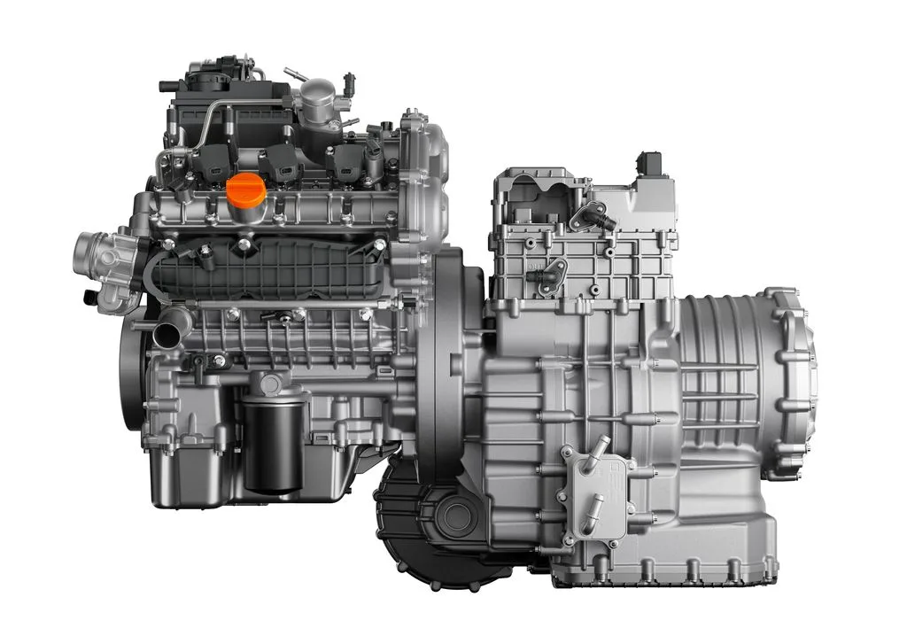 The engine is being shown alongside Horse’s new 4LDHT four-speed hybrid transmission.